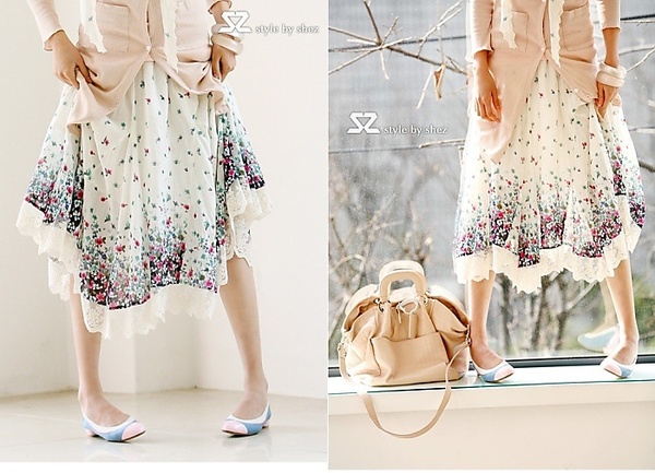 再配上細緻蕾絲,春感濃厚~