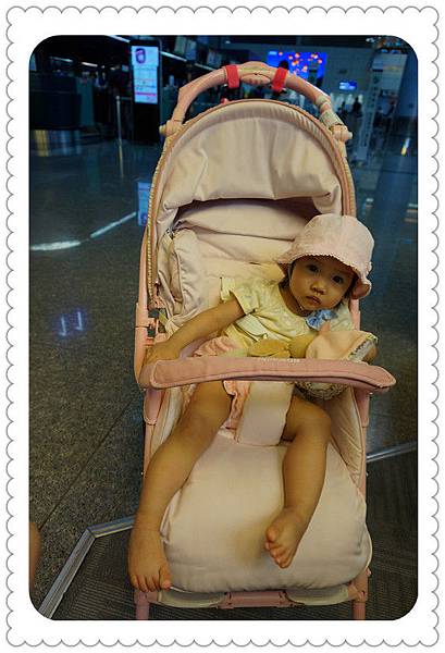 掛完行李,就這樣一路推著女兒到登機口